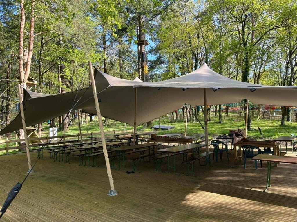 Au cœur du parc, un espace couvert aménagé vous attend pour vous accueillir. Du café d’accueil, à votre pause déjeuner jusqu’au repas, et pourquoi pas accueillir votre réunion d’équipe.